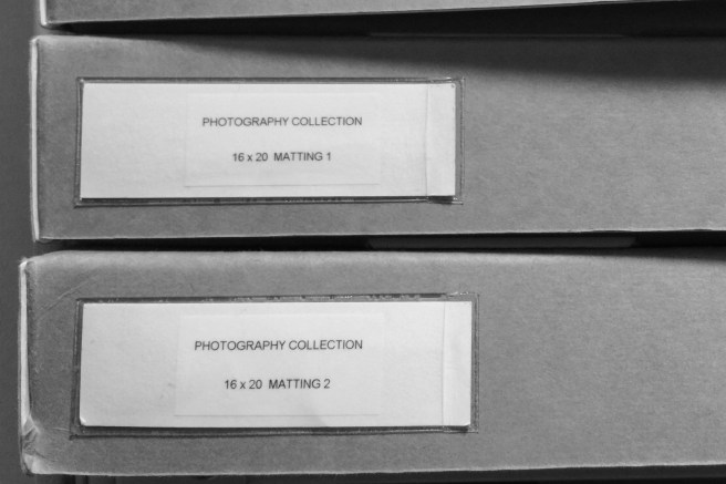 年末にオリジナルプリントを見返してみた。グループ展で出した昔の自分のプリントも区別なく見てみる。ひとりプリント・ビューイングだ。額装しているものはたまに掛け替えているので、見る機会が多いのだが、シートのまま、もしくはブックマット入りのものは年に数回ほど見る程度だ。別に思いいれが浅いわけではなく、すべてを額装して飾るわけにはいかないだけだ。お金が掛かるのはもちろんだけど、額に入れると物理的にかさばるので、今の住環境では収納に支障が出る。ブックマット入りも含めてシートはすべて無酸性の保存箱に小分けして保管している。写真集のスペシャルエディションに付属しているプリントなども同じように冊子と分けて保管している。