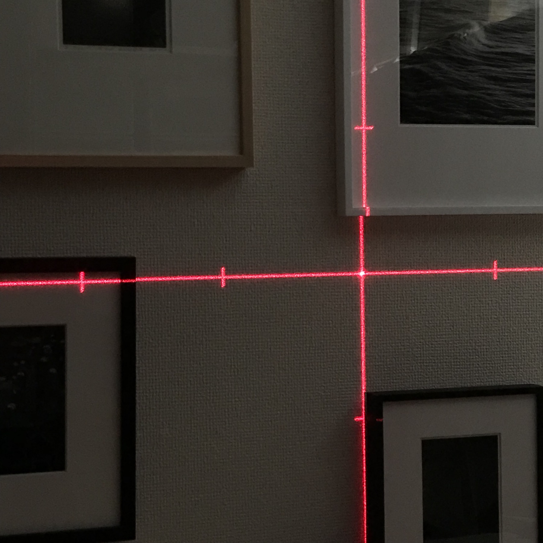 展示に合わせてレーザー墨出し器があってもいいなと思って探していた。一般的なレーザー墨出し器は釣鐘型のものが多く、そこそこ高価なものが多い。グループ展などで借りて使ったこともあったが、買うには至らずだった。強いて挙げれば、ブラックアンドデッカー社の安価なものがあるけど、見た目がどうも気に入らない。